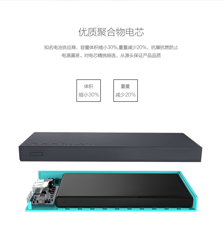 • 商品名称:锐思(Recci)充电宝7000毫安超薄移动电源苹果X安卓通用手机充电宝 RS-7000