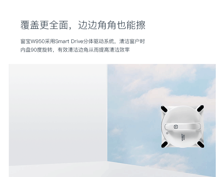 • 商品名称:科沃斯(Ecovacs)窗宝擦窗机器人家用智能全自动擦窗清洁机器人擦玻璃神器 W950
