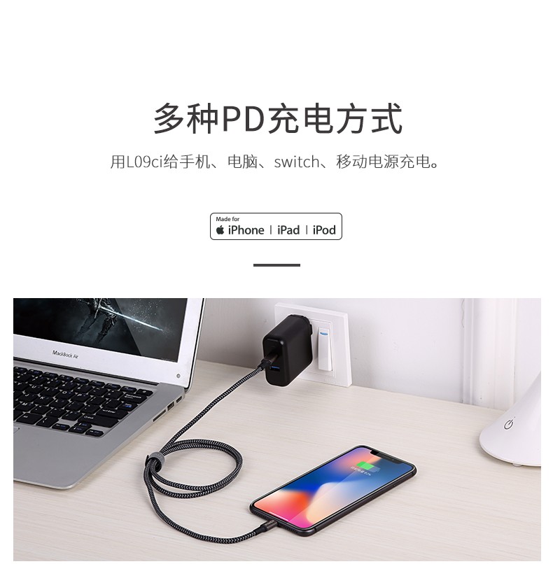 • 商品名称:大麦(IDMIX)苹果MFi认证PD快充线数据线USB-C/Type-C to Lightning充电 黑色 L09C1