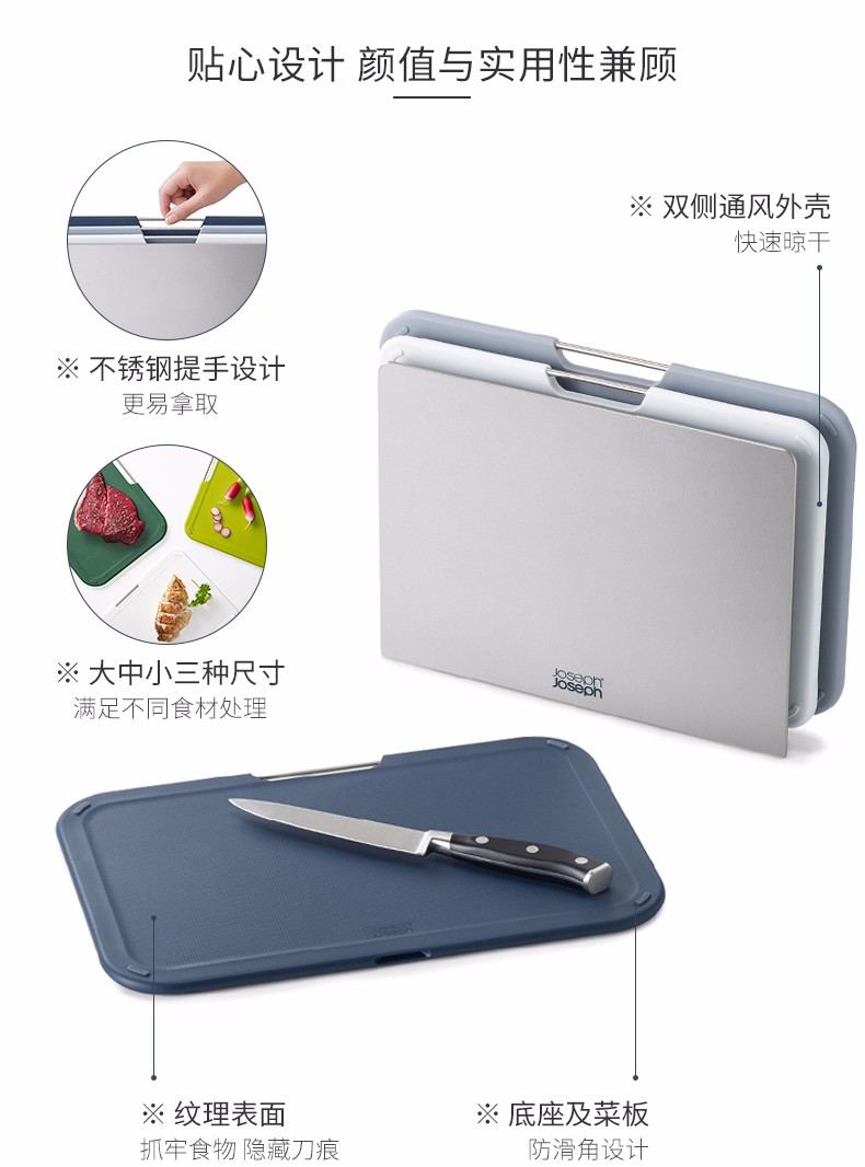 • 商品名称:Joseph Joseph 厨房配件菜板三件套砧板分类菜板辅食菜板 3件套 60147/60163