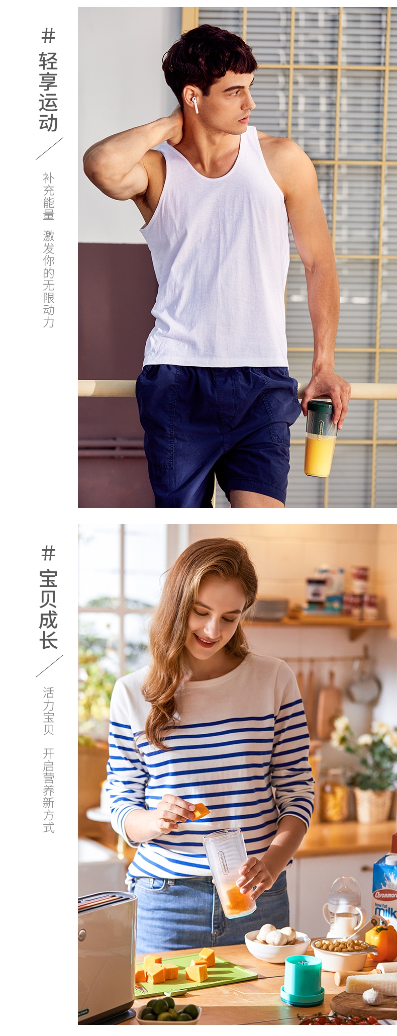 摩飞电器(Morphyrichards)便携榨汁杯无线充电迷你榨汁机果汁 MR9800