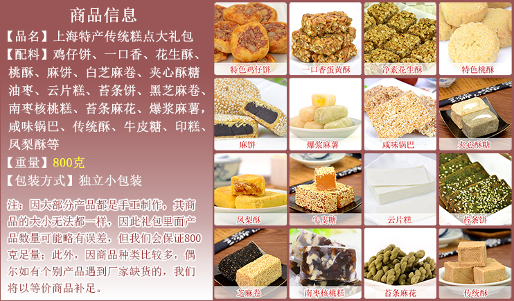• 商品名称:上海特产城隍庙小吃18款传统糕点大礼包800g老人点心字号送礼零食