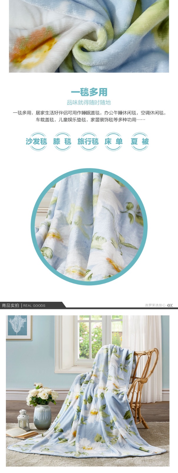 • 商品名称:罗莱(LUOLAI)盛世花开法兰绒毯蓝色 150*180cm