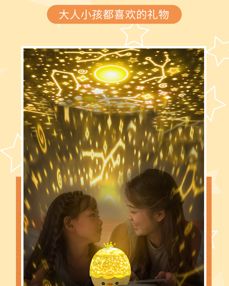 • 商品名称:皇冠鸭浪漫星空灯USB旋转遥控投影小夜灯蓝牙版