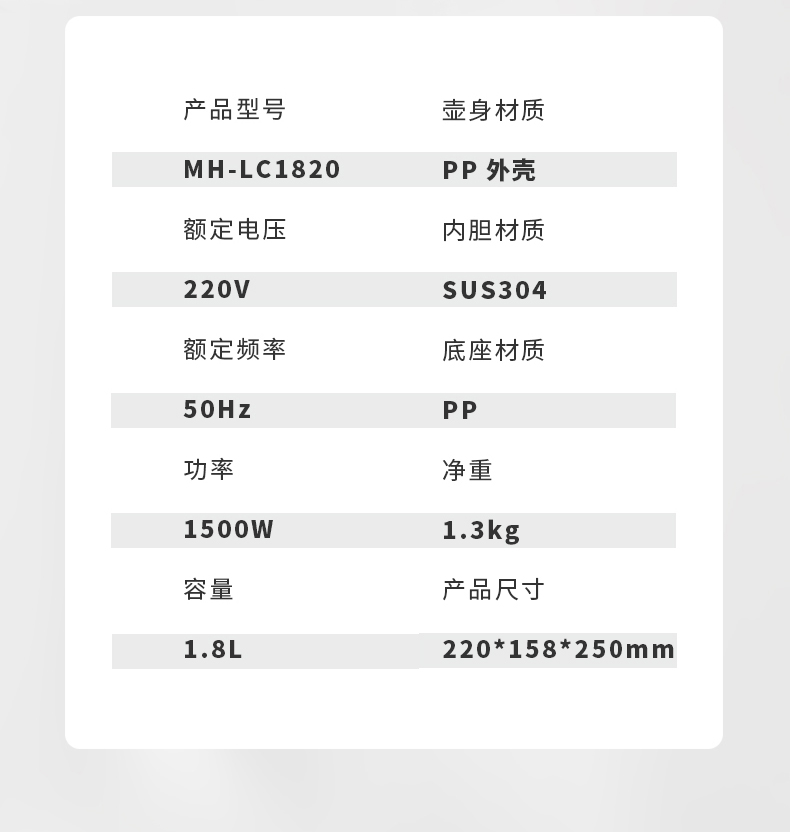 • 家用电器类别:电热水壶