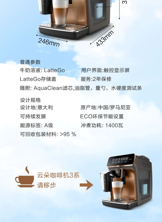 • 商品名称:飞利浦全自动浓缩咖啡机EP5144