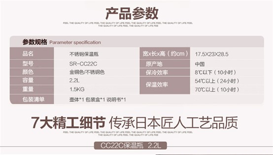 • 商品名称:象印不锈钢气压式保温瓶SR-CC22C