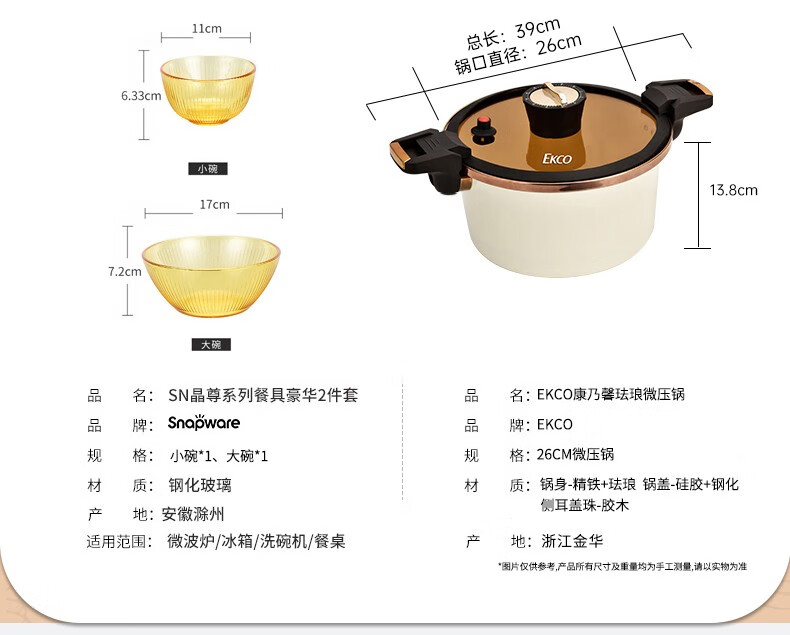 • 商品名称:康宁EKCO康乃馨珐琅微压锅套装