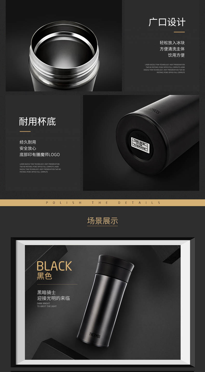 • 商品名称:膳魔师(THERMOS)高真空不锈钢经典大口径办公便携保温保冷杯400ml TCMA-400